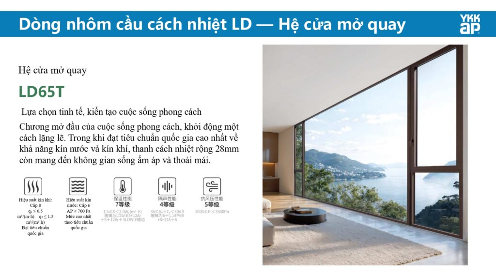 Cửa sổ YKK AP Nhật Bản là sản phẩm nhôm hệ cao cấp, nổi tiếng toàn cầu với chất lượng vượt trội, độ bền cao và thiết kế hiện đại. Thương hiệu YKK AP thuộc tập đoàn YKK Nhật Bản, nổi tiếng với tiêu chuẩn an toàn – cách âm – cách nhiệt – tiết kiệm năng lượng, đồng thời phù hợp với mọi loại công trình từ nhà phố, biệt thự, chung cư đến văn phòng và resort cao cấp.